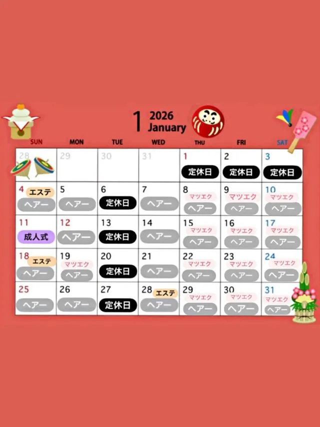 2026年1月の営業日カレンダーです 👏🏼 ♡